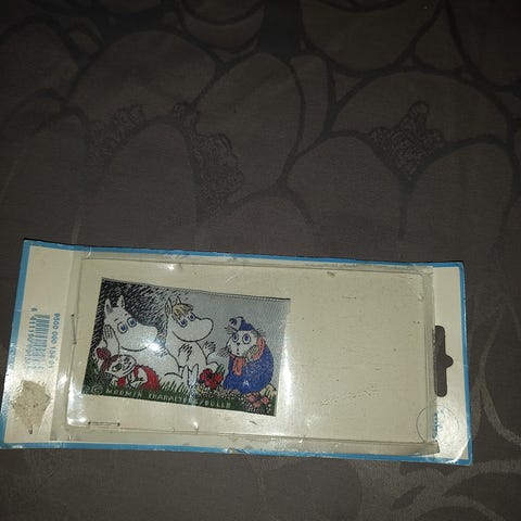 Ompelemattomia, hyväkuntoisia 90-luvun muumimerkkejä lapsille. Valmistaja Inka / Moomin Characters Bulls. Suurin merkki 9,5 x 13 cm ja pienin merkki 4 x 5 cm. Savuton, homeeton ja eläimetön talous. Yhteensä 50e.