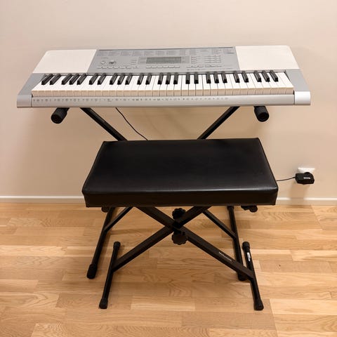 Yamaha PSR-273 kosketinsoitin. Soittimessa on sisäänrakennetut kaiuttimet, LCD-näyttö ja useita ääni- ja rytmivaihtoehtoja. Yläpaneelissa on painikkeet äänten, rytmien ja toimintojen valintaan sekä säätimet äänenvoimakkuudelle ja muille perustoiminnoille. Mukana virtalähde. Soveltuu esimerkiksi kotisoittoon ja harjoitteluun. Nouto Lieto.