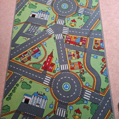 Matto hyvässä kunnossa, yhdestä kulmasta rispaantunut vähän.