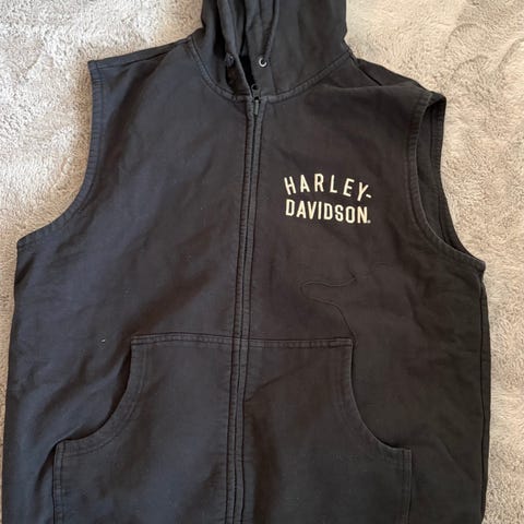 Harley-Davidson lämmitettävä toppaliivi musta. Vetoketjukiinnitys edessä ja korkea kaulus. Edessä kaksi vetoketjutaskua ja pieni logomerkki rinnassa. Takana niskassa iso Harley-Davidson -logomerkki.