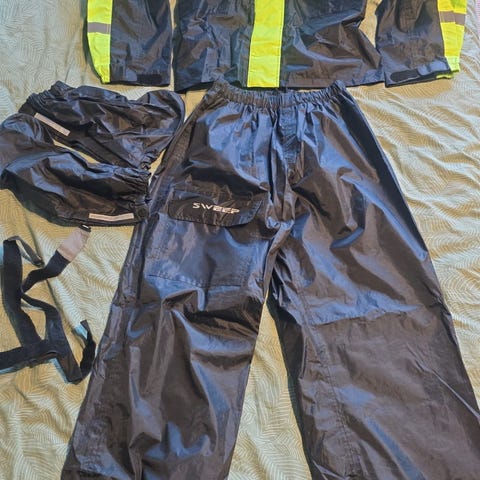 Sweep sadehaalari ajopuvun päälle koka S ja Hanx ajokenkien suojat. Uusia