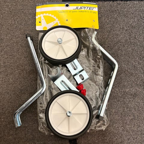 Jupiter tukipyörä 12–20" kokoisiin polkupyöriin. Väri valkoinen. Tarkoitettu lisätueksi pyöräilyn opetteluun ja tasapainon parantamiseen lasten tai aloittelijoiden pyörissä. Soveltuu useimpiin 12–20 tuuman renkailla varustettuihin polkupyöriin, joissa on yhteensopiva kiinnitys tukipyörille.