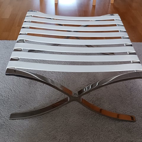 Tämä rahi on ollut osa ulkokalusteita. Rahia on pidetty sisällä joten on hyvässä kunnossa. Päällinen on helposti irrotettavissa ja putsattavissa. Ei ole nahkaa mutta käsi tuntuma on samanlainen. Tukevat metallijalat. Merkki laadukas Interface. Leveys 66cm, syvyys 48 cm ja korkeus 40cm.