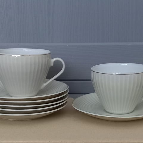 Kahvikupit kuppi kupit kahvi valkoiset kahvimuki kahvimukit valkoinen Forten kahvikuppi Kesti arabia iittala mukit muki iittala iittalan ruskea valmistujaiset ruskeat tupa raita raitainen ajaton juhlat juhla 1980 tusina 1974 1985 astiasto