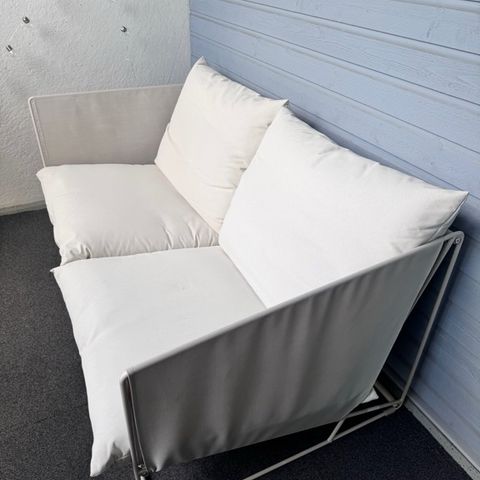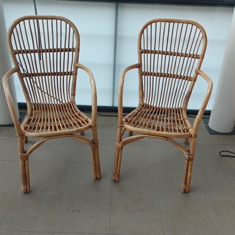 Polyrottinkinen terassikalustesetti, johon kuuluu kaksipaikkainen sohva, kaksi nojatuolia ja suorakaiteen muotoinen sohvapöytä. Kalusteet ovat mustaa polyrottinkia, ja sohvassa sekä nojatuoleissa on vaaleat istuinpehmusteet. Pöydässä on tumma, tasainen lasikansi. Sopii parvekkeelle, terassille tai pihalle pöytäryhmäksi. Polytottinkiosat on hyvässä kunnossa, kankaat paikoin rispaantuneet. Pystyy käyttämään näin tai näppärä vaihtaa uudet kankaat ja kun kalusteet on pesty, niin oikein hyvän pöytäryhmän tästä saisi uuteen kotiin edullisesti. Hp. 200 euroa/tarjous