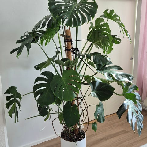 Peikonlehti (monstera deliciosa) muoviruukussa. Paljon liuskottuneita lehtiä. Nouto Mäkkylästä.
