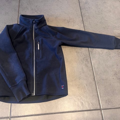 Yhden lapsen muutamia kertoja käyttämä 122 cm musta windfleece. Kerran pesty hajusteettomasti, kunto uutta vastaava. Nimikoinnista pieni jälki kokolapussa.