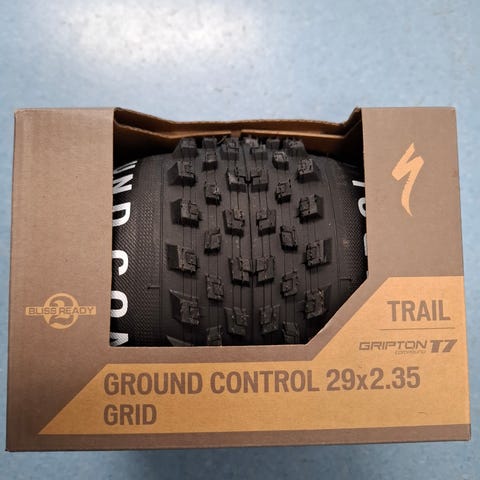 Specialized Purgatory Groud T9 29x2.4 (62-622) ja Ground Control Grid T7 29x2.35 (60-622). Pyörän mukana tulleet ajamattomat renkaat.