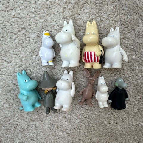 Myyn 6kpl muumi hahmoja. Ovat kylpyleluja, mutta soveltuvat hyvin muuhunkin leikkiin. Alkaen 0+. Osa on täysin priimakuntosia, osassa jotain pientä tahraa.
