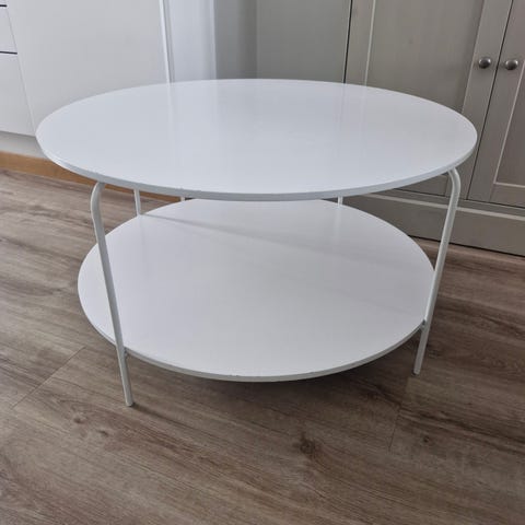 Myydään IKEA:n pyöreä sohvapöytä. Kaunis klassinen muotoilu ja sorvatut jalat. Pöydässä on myös kätevä laatikko säilytykseen.