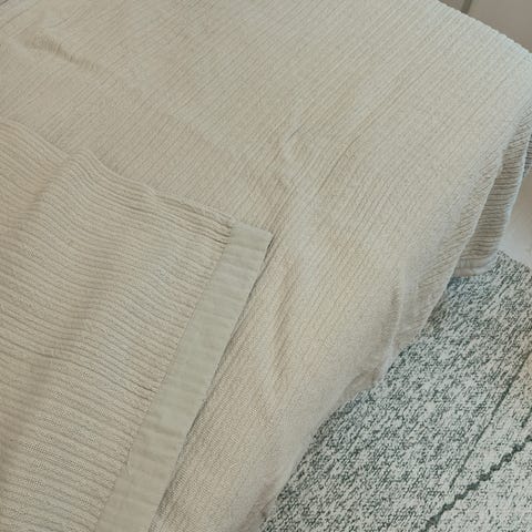 Myydään tosi hyväkuntoinen tikattu päiväpeitto. Voidaan käyttää molemmin puolin.