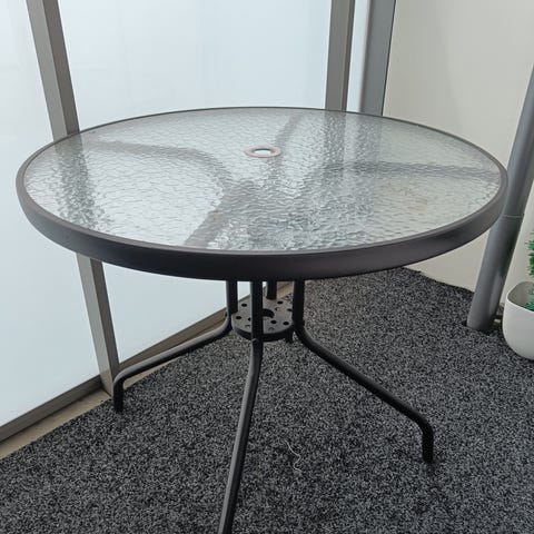 Pöytä on valmistettu korkealaatuisesta teräksestä ja synteettisestä pajusta (teknorottinki)