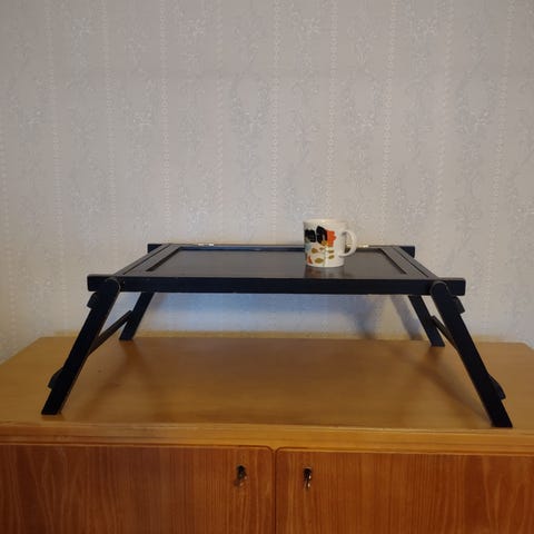 Metallinen tarjotinpöytä. Näitä löytyy 2kpl. Toinen vielä paketissa. Hinta kpl.