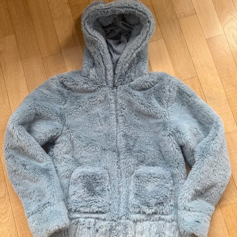 Lasten teddytakki koossa 134/140. Jäänyt hyvin vähälle käytölle, joten kunto hyvä. Vuorikangas ja paksu teddy. Savuton, eläimetön koti.