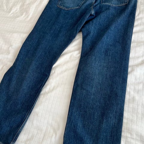 Arket Loose Fit farkut miehille, koko M ja vyötärökoko W30., lahkeen sisäsauma 32. Materiaalina denim, väri sininen. Perinteinen viisitaskumalli, vyölenkit ja nappi–vetoketjukiinnitys.