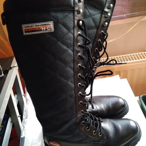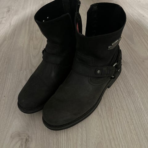 Siistit ja erittäin hyvässä kunnossa olevat Harley-Davidson -nilkkurit mallia Scout (D95262). Huollettu valjasöljyllä.