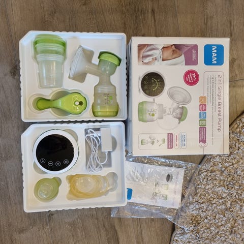 Sisältää 2 maidon säilytysastiaa ja 1 pullon johon voi pumpata maitoa.
