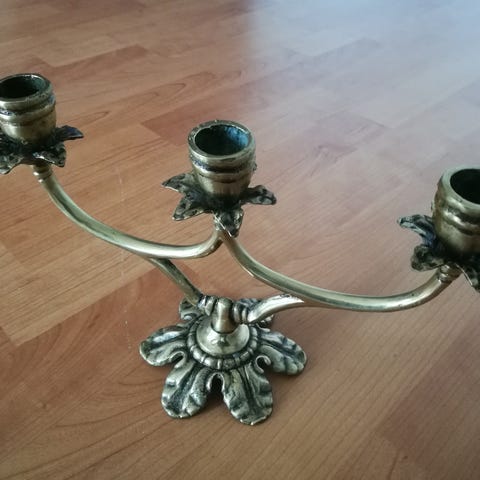 Hyväkuntoiset kynttilänjalat, korkea ja kaksi matalaa. Sarpaneva leima matalissa.