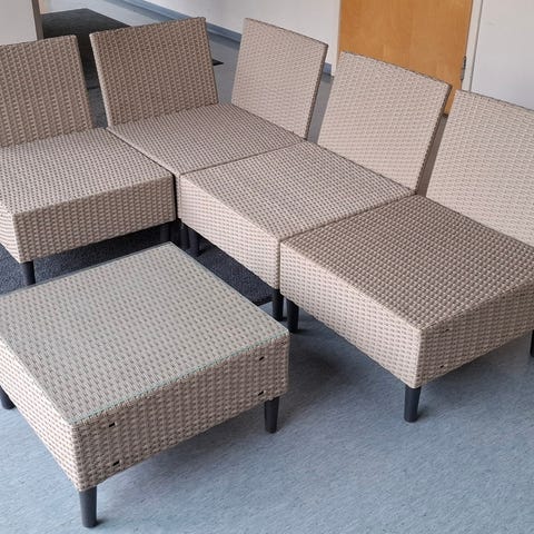Ryhmään kuuluu kolmen istuttava sohva ja kaksi nojatuolia. Kalusteet soveltuvat ulkokäyttöön terassille tai parvekkeelle. Helppo puhdistaa.