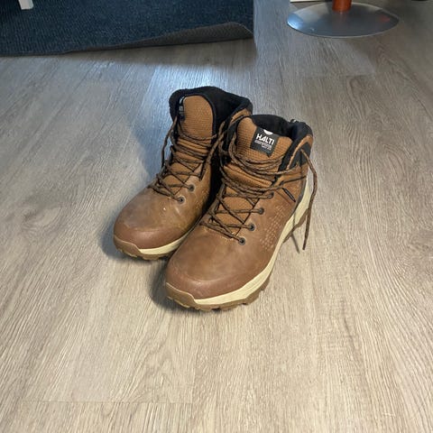 Vaellus ja talvikengät Vaerltaja merkkiset. Koko ilmoitettu pohjassa 44-45, mutta eurooppalaisen koko taitaa olla 42. Minulle mahtuvat hyvin 42 jalkaan. Myyn tarpeettomana. Avautuu edestä ja on helppo laittaa jalkaan. Pohja kuminen varteen saakka, joten loskat eivät kastele jalkoja. Todella hyvä ostos!