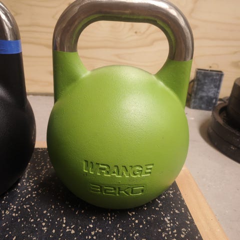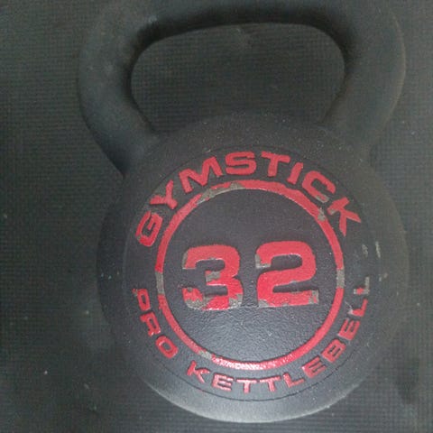 Rautainen kahvakuula 32kg. Mustaksi maalattua rautaa, ruostepilkkaa siellä täällä vähän, mutta ei haittaa käyttöä.