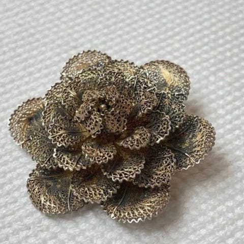 Vintage-hopeasta valmistettu 925 S filigraanirintaneula