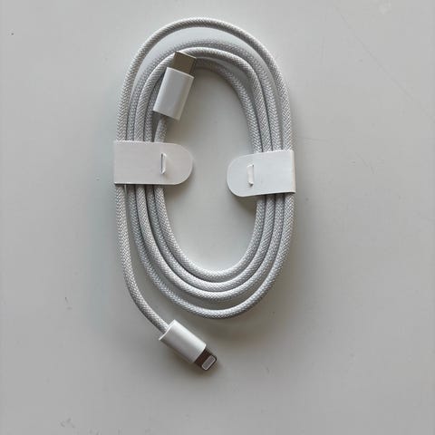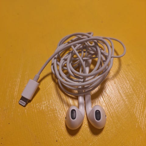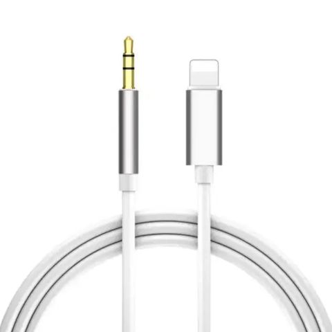 Apple handsfree-adapteri lightning–3,5 mm kuulokeliitäntä. Valkoinen adapteri, jossa toisessa päässä lightning-liitin ja toisessa 3,5 mm kuulokeliitäntä. Tarkoitettu langallisten kuulokkeiden tai handsfree-laitteiden liittämiseen yhteensopiviin Apple-laitteisiin, joissa on lightning-portti.