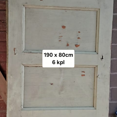 Rempassa irronnut ovi vailla kotia. Hae pois! Karmissa jonkin verran oksat ovat tulleet maalin alta näkyviin. Nouto