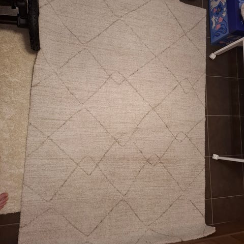 Kauniit, puuvillaiset, pehmeät matot, joissa kaunis berber-tyylinen kuviointi. Maton pohjasävy on valkoinen ja kuvio on vaalean harmaa.