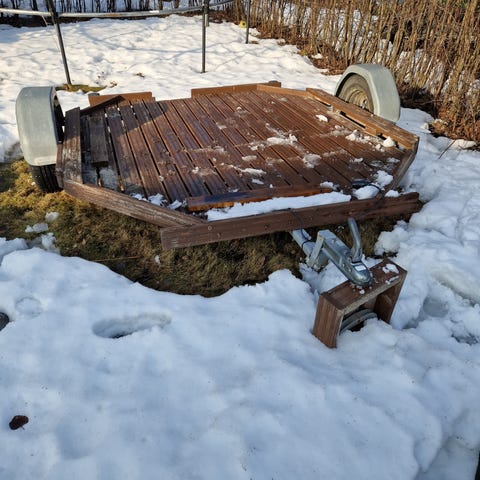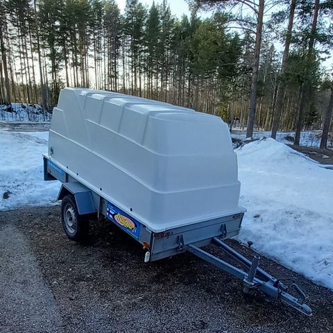 Melko hyvässä kunnossa oleva peräkärry. Kuomussa pikku reikä, näkyy kuvassa. Uudet renkaat+vanteet. Pohjalevy ehjä. kaikki valot toimii.