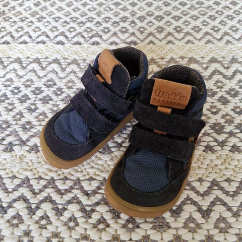 Uutena viime syksynä ostetut Froddon paljasjalkakengät 23 (ovh n. 80€). Ollut käytössä muutaman kuukauden. Mielestäni tosi hyvässä kunnossa. Tarrat pitävät, ei merkittäviä kulumia. Pohjissa jonkin verran likaa.