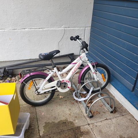 Yosemite pinkki lasten polkupyörä 16"-kokoisilla renkailla. Pyörässä on etukori, takatavarateline, lokasuojat ja seisontatuki. Mukana tulevat irrotettavat apupyörät sekä työntöaisa. Sopii n. 3-6 vuotiaalle. Ollut käytössä kahdella lapsella.