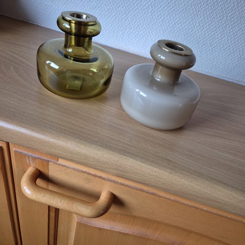 Marimekon kirkas Puteli ja musta Butticula kynttilänjalat. Alkuperäiset laatikot mukaan. Hinta yhteensä. Nouto Valkeakoski tai postikulut lisätään hintaan.