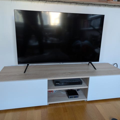 Mukaan tulee virtajohto, kaukosäädin, tvn jalat ja kääntyvä seinäteline. Ostopäätöksen jälkeen irrotus seinästä.