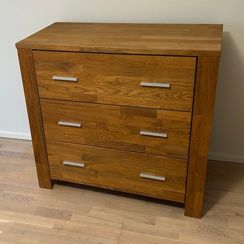 Madrid-lipasto. Materiaali taitaapi olla mahonki. Painava on ja jonkin verran käytön jälkeä nähtävissä.
