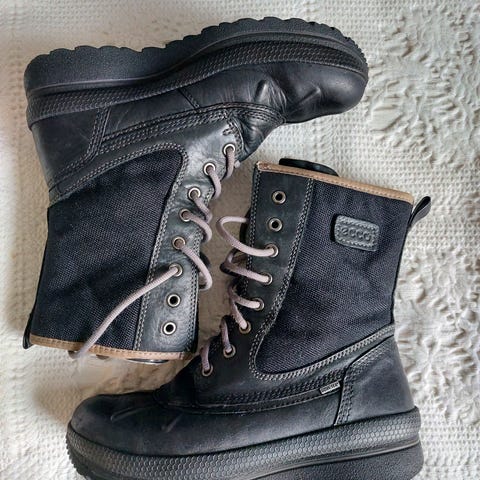 Ecco kengät, koko 36. Nahkaa. Väri vaaleansiniset, ruskeat nahkanauhat. Pinnassa käytön jälkiä, en ole yrittänyt puhdistaa. Muutoin hyvä käyttökunto.