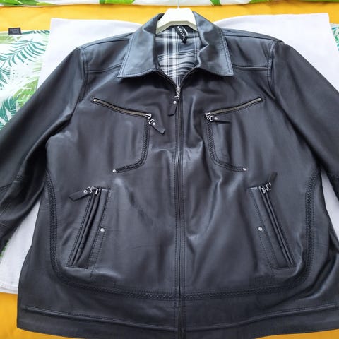 Philip Russel merkkinen puolipitkä nahkatakki. Koko XL. Pituus noin 90cm, hihanpituus olkapäästä hihansuuhun noin 64cm, olkapäästä olkapäähän noin 58cm. Hyväkuntoinen, ollut käyttämättömänä vuosia ja myydään nyt vaatekaapin perältä tarpeettomana pois.