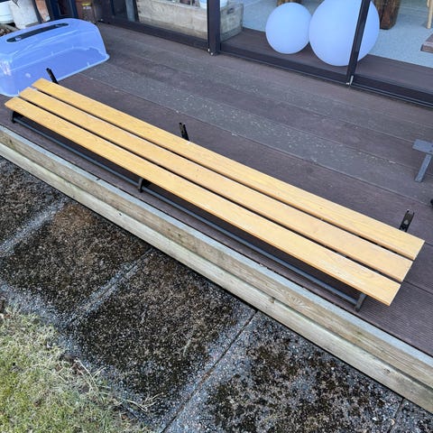 Eteiseen säilytyskokonaisuus. Tukeva kenkäpenkki (istumakorkeus), hattuhylly naulakoilla sekä naulakko. Kiinnikkeet mukaan.