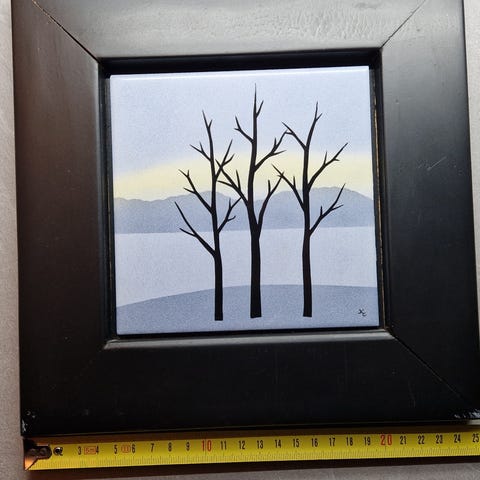 Hieno keraaminen seinätaulu Antti Faven Syksyn kultaa 1933. Pohjola-yhtiöiden taidekokoelmat. Koko 21 cm x 19 cm.