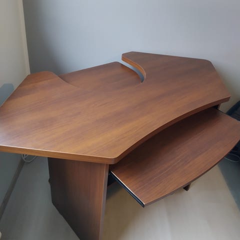 Leveys 73 cm, 50 cm syvä ja 75 cm korkea työpöytä. Itse päällystetty dc fixillä kuvan näköisellä menestyksellä. Pinta siisti muistaakseni teipin alla. Tarkempi pesu jää hakijalle. Omatoiminen haku onnistuu pateniemestä.