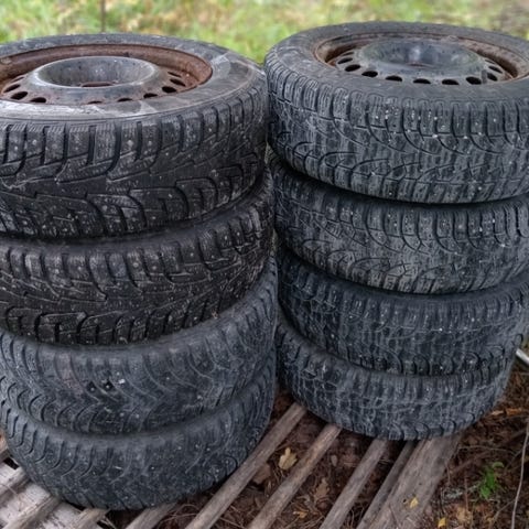 Ford Tourneo Courier / Transit Courier peltivanteet nypityillä heikohkoilla nastarenkailla. Vanteet käynevät moneen muuhunkin autoon. Saa hakupalkalla. Toki kahvipaketin otan mielellään vaihdossa jos hakija niin haluaa :)