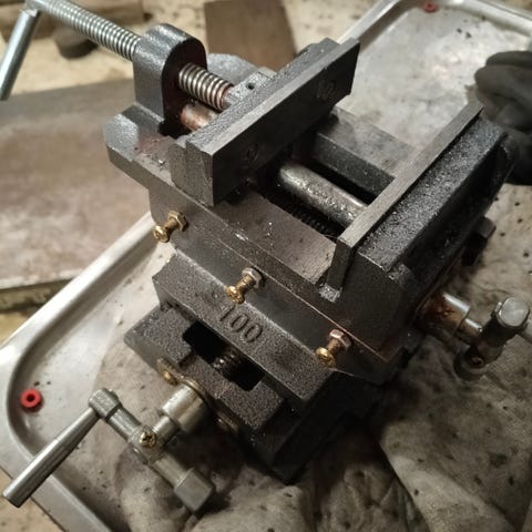 Metallinen ruuvipuristin työpajalle tai verstaskäyttöön. Väriltään vihreä, kiinnitys vivulla. Soveltuu erilaisten kappaleiden puristamiseen ja kiinnittämiseen esimerkiksi puu- ja metallitöissä.