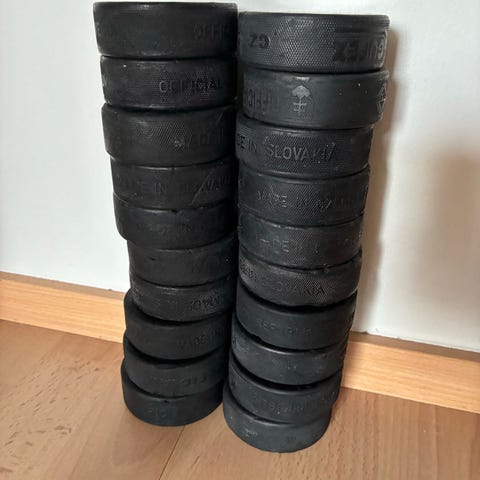 Jääkiekkoja piha harjoitteluun tai toki ihan jäällekin! Kunto vaihtelee laidasta laitaan enkä valikoi. Toimitus onnistuu uusimaa-keski uusimaa alueilla.