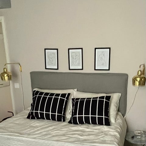 2kpl Artek seinävalaisimia, suunnittelija Alvar Aalto. Valkoinen, kartiomainen valaisin, jossa on useita vaakasuuntaisia metallilamelleja. Valo suuntautuu pehmeästi sekä ylös- että alaspäin, jolloin seinälle muodostuu tasainen, häikäisemätön valaistus. Soveltuu sisäkäyttöön esimerkiksi olohuoneeseen, käytävään tai makuuhuoneeseen yleis- tai tunnelmavaloksi.