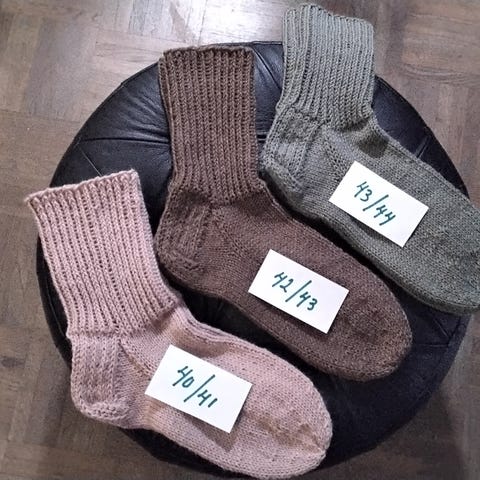 100 paria itsekudottuja villasukkia. Useita kokoja ja värejä. Hinnat sovittavissa isommasta erästä.