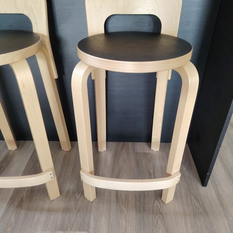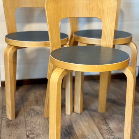 Myydään Artekin 4 Alvar Aallon suunnittemaa tuolia. Olleet käytössä noin 4v. Musta istuinosa ja muuten vaalea puu.