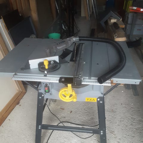 Fox F36-526 pöytäsaha kiinteällä jalustalla. Sahanterä on upotettu pöytätasoon, jossa on uritettu pinta työkappaleen ohjausta varten. Etupaneelissa on käynnistys- ja pysäytyspainikkeet sekä säätökahva terän korkeuden tai kallistuksen säätöön. Soveltuu puun katkaisuun ja halkaisuun erilaisissa puutöissä ja rakennusprojekteissa.