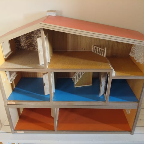 Nukketalo. Kalustettu.Käytönjälkiä on. Esim. Lattia matto hieman kupruilee, piirretty johonkin kohtiin. Katossa hieman jälkiä. Mukaan tulee muutamia tavaroita. Tauluja, eläimiä , muutama nukke ym. Vain nouto. Tai voin tuoda joensuuhun kauppateissuillani.