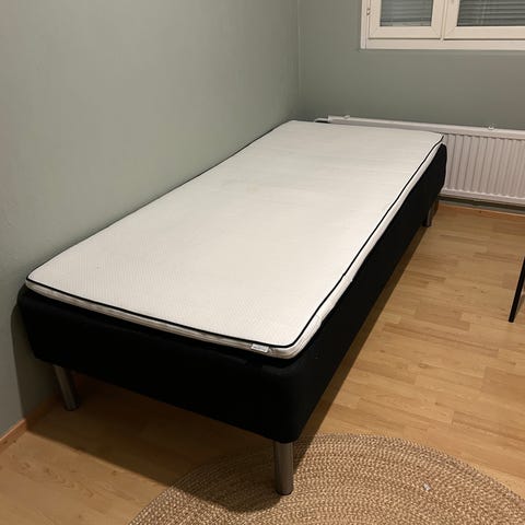 Sänky on täysin ehjä ja siisti, pintakangas irrotettava ja juuri pesty.