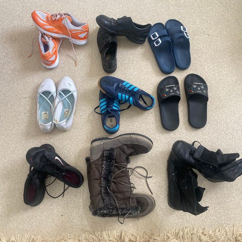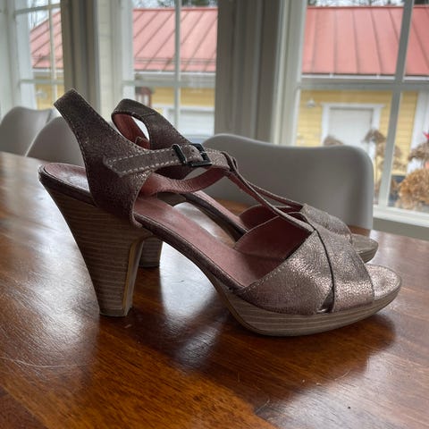 Myydään käytettyjä ja varastossa säilössä olleita kenkiä (painaumia), mustat korkkarit eniten käytetty kahdet muut vain pari kertaa. Caprice mustat korkkarit koko 6 eli 39, Tamaris vaaleat korkkarit koko 41, mustat Calsuper kävelykengät koko 41, 5€/pari